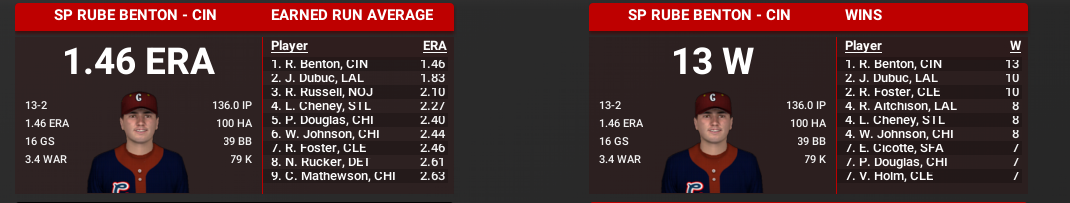 The Lobos have won 9 in a row and are now 3.5 games up and looking for their first pennant. They are definitely win Win Now mode having picked up Eddie Cicotte, Clyde Milan along with Sam Crawford back in the offseason. Are they good enough to do it? I believe so, they have the best run differential +144 in baseball. The Eastern League leaders, Boston, are just +44.
