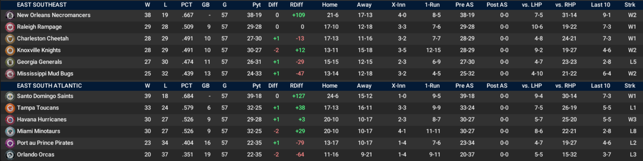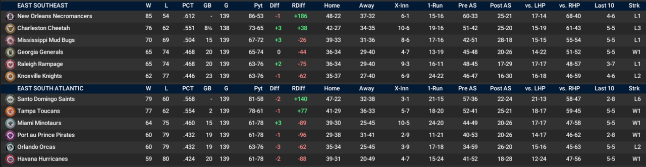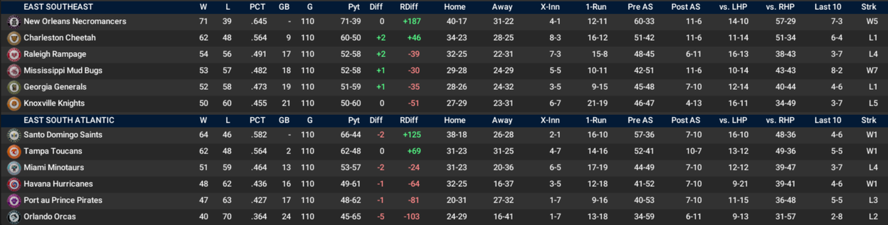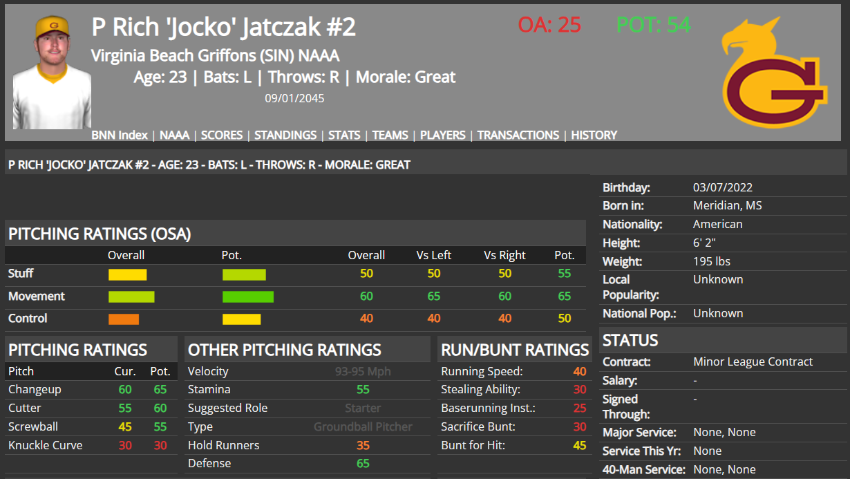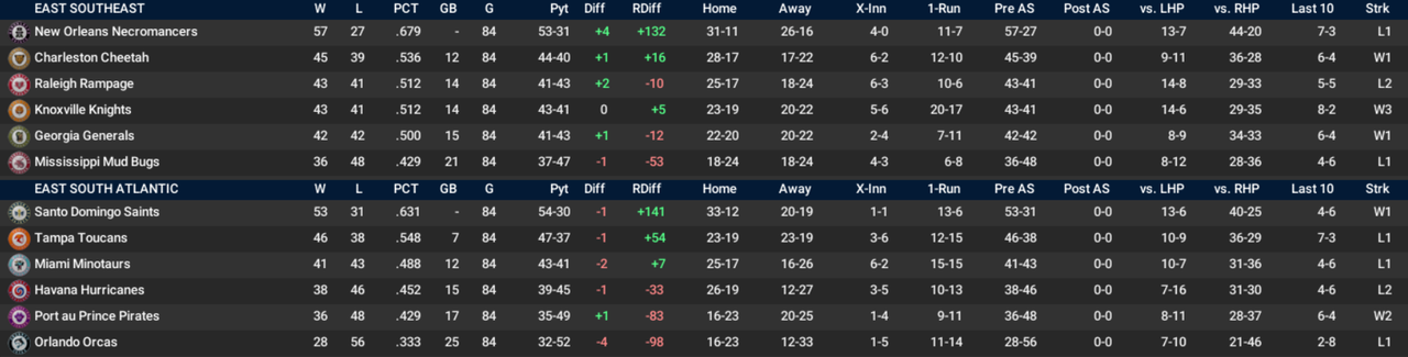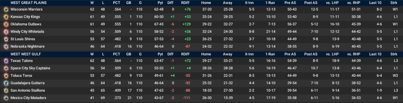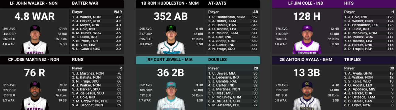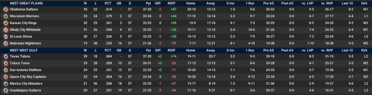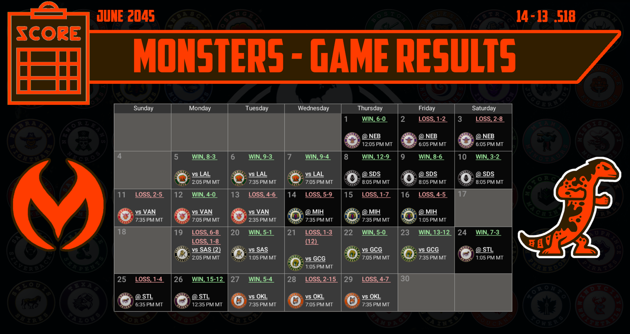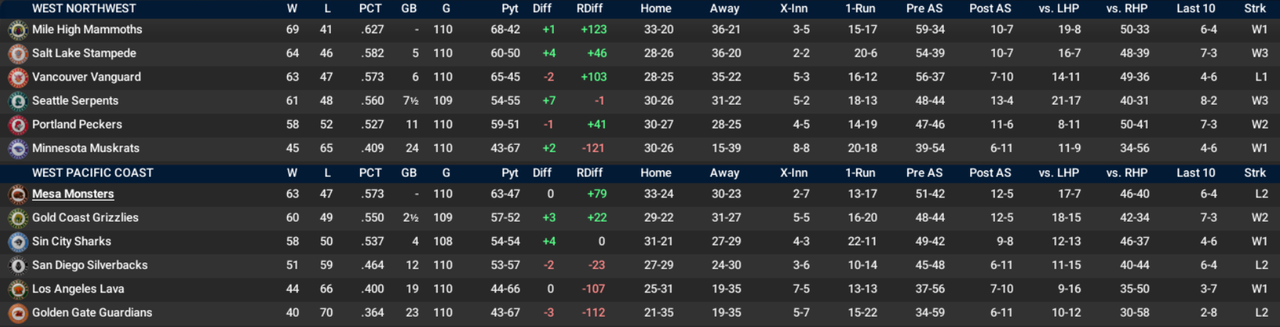 ![]() ![]() I didn't get the Acquire an AllStar achievement for trading for Jamez, because he somehow did not make the AS team despite being 2nd in voting for CF and putting up a .332-19-64 first half, producing 4.7 WAR in the process. Sin City, seemingly giving up on the playoff chase put their closer on the trading block and I acquired him at the trading deadline. The "All In" season continues. Somehow the fans still are not all that interested. CL Ruguru will be a free agent at the end of the season. Mesa Monsters Get ... ![]() Sin City Sharks Get ...