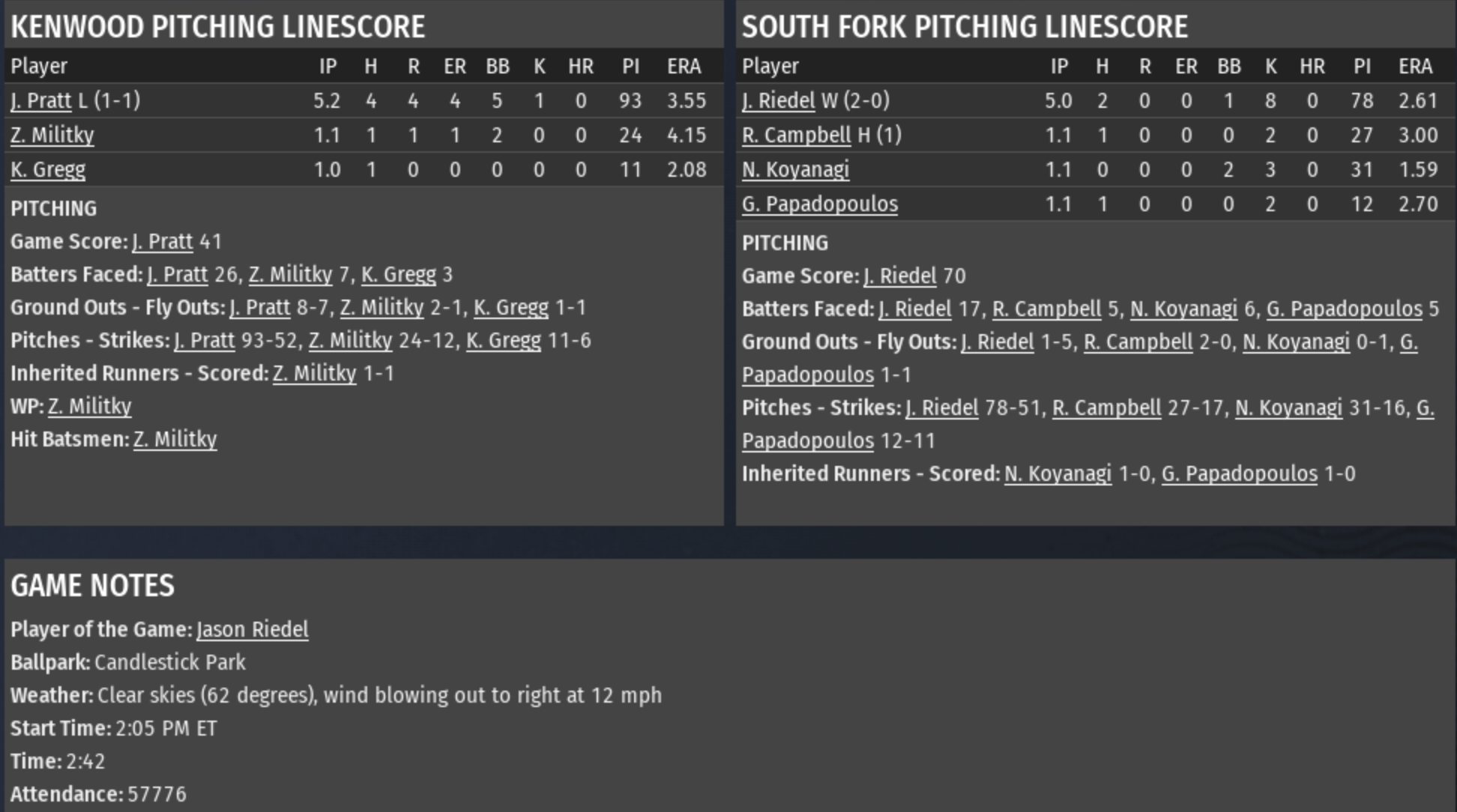 San Alejo vs. South Fork summary