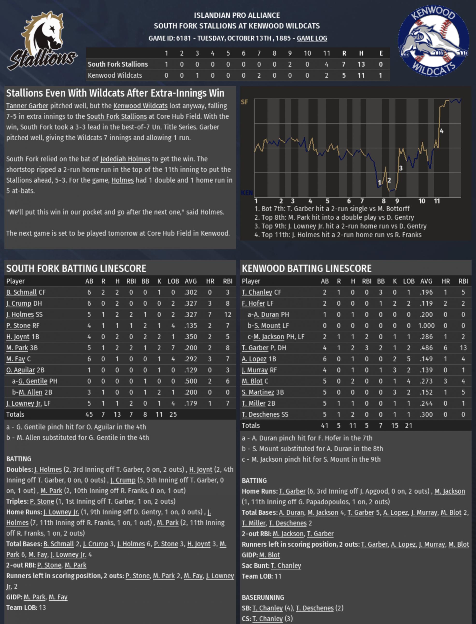 In a wild series, the Stallions prevailed to advance to the Union Title Series for the 5th time (1876 1880 1882 1883 1885). |