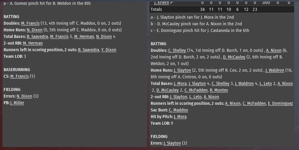 Tied 1-1, a two-run home run by Manuel Coke highlighted a three-run top of the seventh inning for St. Louis as the River Walkers defeated Evansville 4-1 at Yankee Stadium (1988). A home run from Yan C. Dixon in the top of the sixth off Bosses starting pitcher Fernando Maldonaldo had tied the game 1-1. St. Louis did its damage in the seventh against the Evansville bullpen. Bob Saavedra got things rolling with a single off Danny McCauley. A wild pitch, with Jackson Miller, at the plate moved Saavedra to second. He scored on a Miller single. Jeremy Kriech then replaced McCauley only to give up a 395 foot homer to right to Coke on an 0-2 pitch. St. Louis rookie starter Kevin Hrdlicka worked five innings, allowing one run on four hits. He struck out five and walked one. Brennan Weldon worked a scoreless sixth inning. Weldon (3-0) earned the win Bobby Westerman handled the seventh and eighth. Nick Strother kept it 4-1 in the ninth for his ninth save. Last edited by rink23; 11-04-2021 at 03:55 AM. |