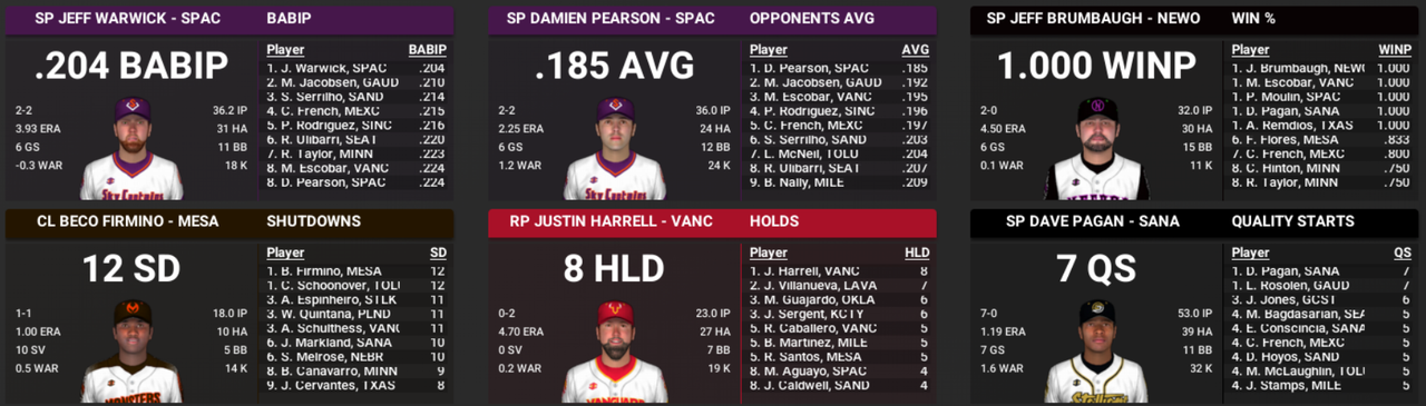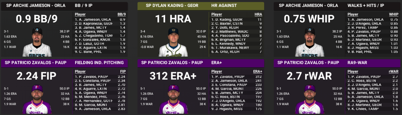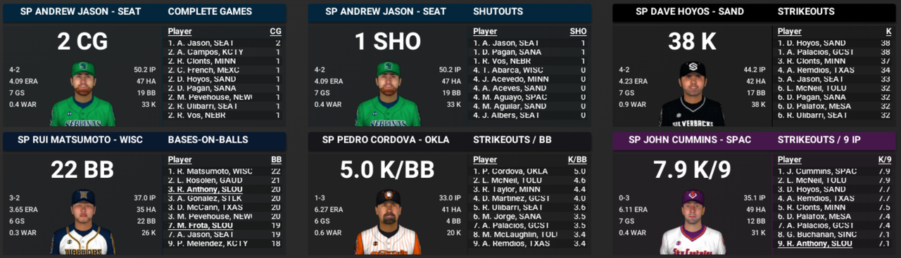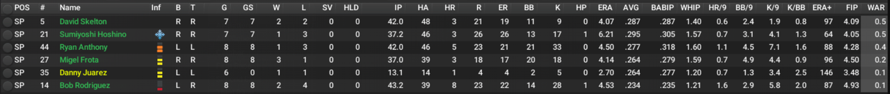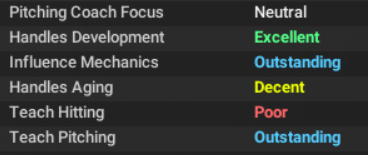 I don't sweat bullpen performance too much because bullpens are volatile by nature, and ripe for over/under performance. But my starting pitching has me confused. Anthony is like the #12 pitcher in the whole league, and isn't that great to be honest. Frota was outstanding in 23, not so much in 24. Most of the guys are in or nearing peak age seasons, but have taken a huge step back. ![]() One of the major aspects seem to be the increase in walk rate, across the board. If anyone reading this crap can help me figure it out, I'd be grateful. My first thought was that maybe my catcher was poor, but I drafted the guy like 3 overall in the Inaugural Draft because he was a good defensive catcher. ![]() Then I thought maybe it was my pitching coach, but I recalled that I was focused on hiring coaches that were very good at what I needed them to be great at.