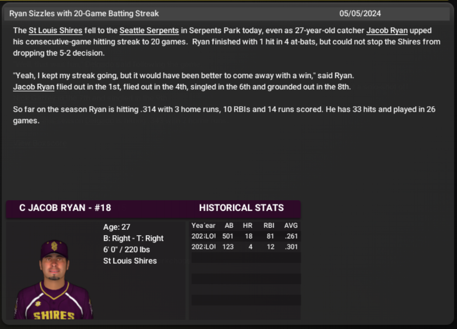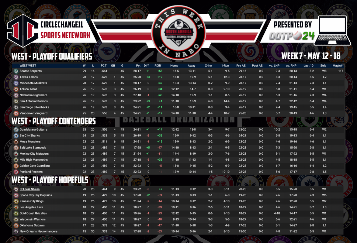 I'll do leaguewide updates at All-Star Break, as well as, player profiles for each of the Shire players, MVP watch, CYA matchups, etc. Shires have been improving and made big steps forward in June, just like in 2023.