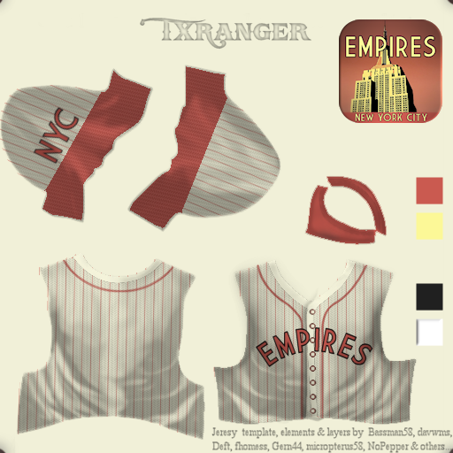 Tex, Ashante's uniform was from a request by Kev24 Fan. He and I (I thought The Clubhouse uniform existed already) wanted a NY Empire, minus the s, for one of his league and to be the NY team for my Indy American League from my ABF league. While The NY Empire may not be retro like your Empires I was hoping to see what your spin on that uniform would be.