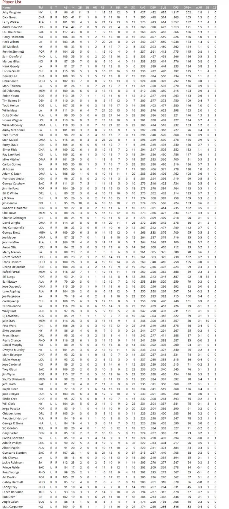 What's funny is the biggest reason one would presume they are so improved is the impact of Albert Pujols, who they drafted in the first round. But Pujols has actually had a very slow start (.241-4-19) through May. Some bouncebacks are helping for sure. Duke Snider (.256-9-31) was limited to 100 games and had 14 homers and 59 RBI all season in 2018. Larry Walker (.322-10-39) is one of the league's top players, a year after missing time with three different injuries. Rick Waits (6-4, 3.30) was released by Boston on opening day last year and pitched two games all season after Alabama picked him up. Mel Parnell, who won 11 games in 2018, already has 7. So it seems to be more that guys have bounced back to bring them on par with the other teams, and then maybe there are some subtle things (i.e. winning 1-run games and such) taking care of the rest. I'll check when I get home. GH