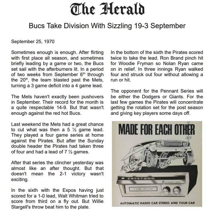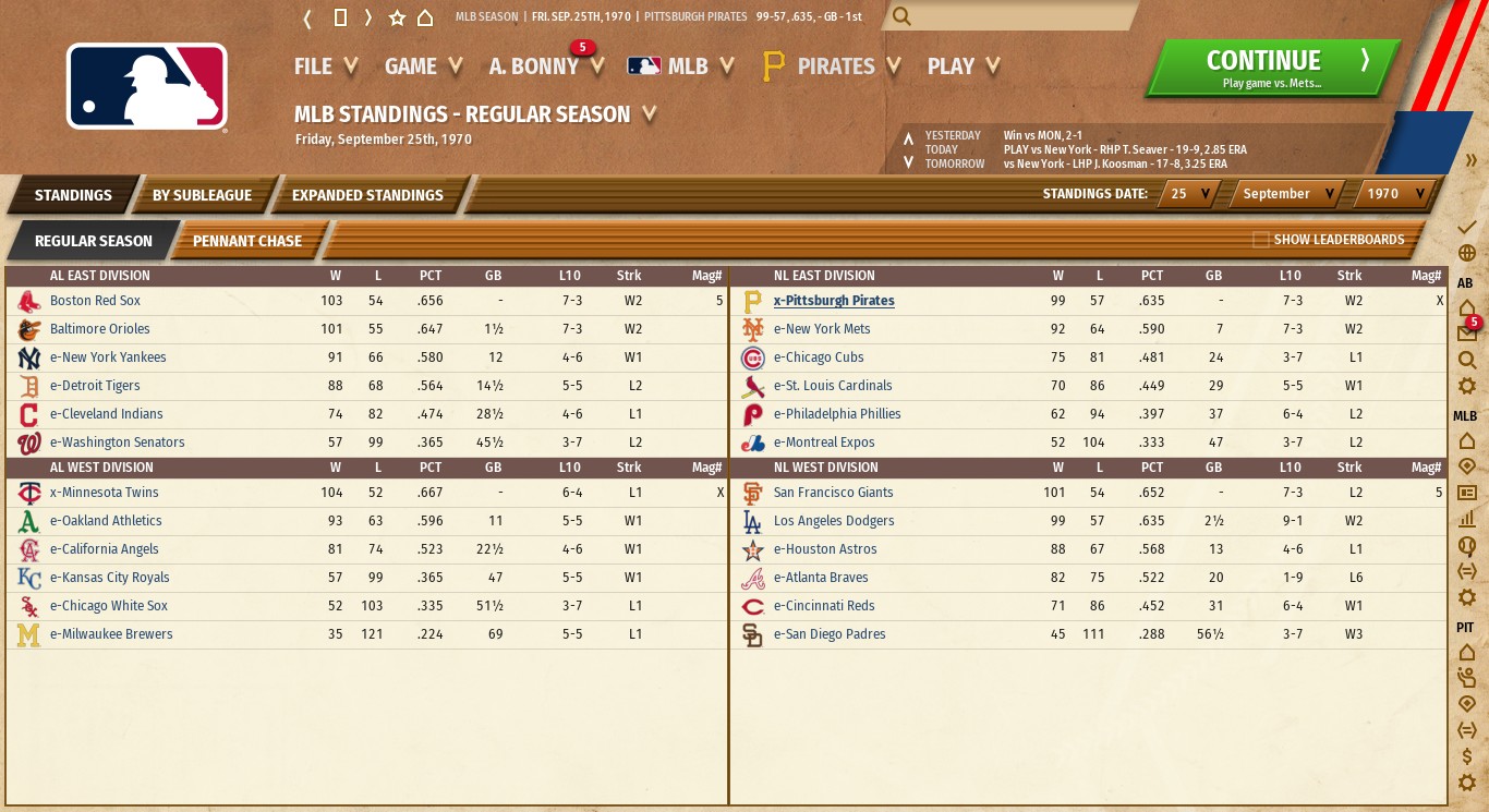They've both done better than in my previous leagues. The joy of development on and TCR 100! Aaron isn't the force he was RL. Records look a lot different than RL when nothing before 1951 exists. My knowledge of 50s baseball is limited. Starting in 1951 has improved it. For a time I started in 1969 and then switched to 1955 to get Clemente's entire career. Later I changed to 1951 to get the entire careers of Mays, Mantle, and Aaron. Anyway, back to records looking different, your Footnote League player Dale Long is #37 on the all time home run list. Frank Thomas is #19 and the Pirates all time home run leader but the Bucs did not retire his number. (Only retired Pirate number is Bob Friend.) Last edited by Brad K; 07-18-2021 at 03:25 PM. |