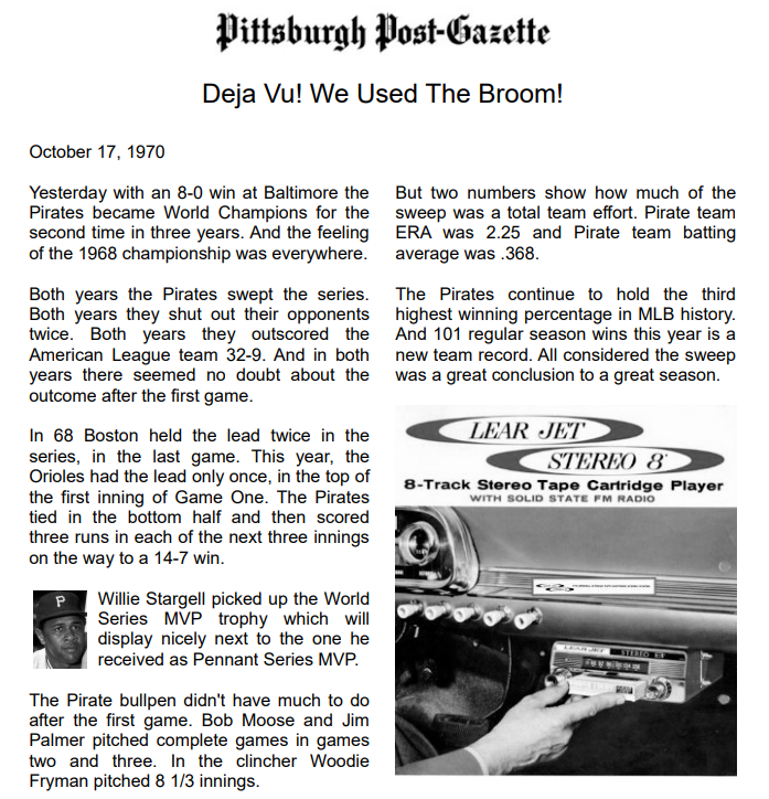 Dear Sir The newspaper said I could come to Giant Eagle where fans could, and I quote, "meet their favorite players". You should know from ticket sales that for a lot of us our favorite players are now in Atlanta, San Francisco, Baltimore, etc. Sincerely Charles F Curmudgeon Eighty-Four, PA |