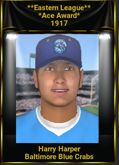 Sadly, despite the year Babe Ruth had, his voters were split between his exploits on the mound and at the plate. The Ace Awards went to Baltimore's Harry Harper, 27-11, 1.48 and LA's Wilbur Cooper, 28-11, 1.78. Tris Speaker of SF and Bobby Beach of Boston took the MVPs.