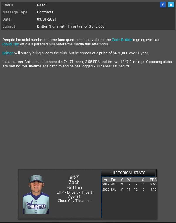Cloud City signed LHP Zach Britton to a 1 yr deal.