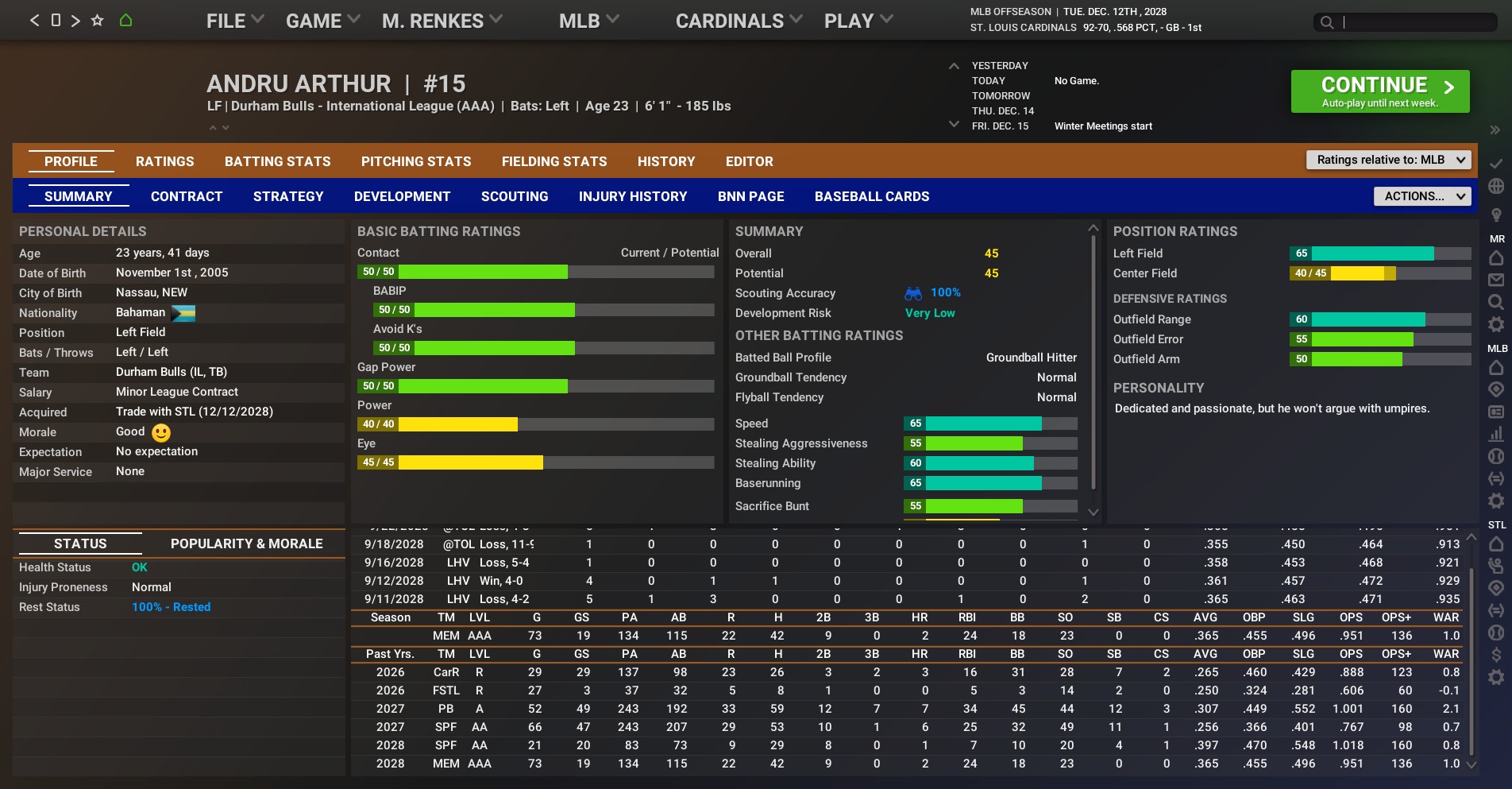 Coming to St. Louis are: * SP - Robert Castirotta -- A 23-year-old right-hander, Castirotta split the 2028 season between rookie ball and Class A Chattanooga. In 11 games/all starts, he was 3-3 with a 7.10 ERA. Castirotta was drafted by Tampa Bay in the 10th round of the 2027 draft. * OF - East Winfield -- A 23-year-old outfielder, Winfield split the 2028 season between Rookie and High-A. In 93 games/79 starts, he hit .350 with 13 home runs and 70 RBIs. * C Enderson Delgado -- A 24-year catcher, Delgado split time between AA Montreal and AAA Durham. In 88 games/all starts, he hit .212 with three home runs and 28 RBIs. A three-time Gold Glove winner, Delgado was signed as a free agent out of Venezuela. * OF Milo Rushford -- A 24-year-old, Rushford split time in AA with two different teams after being traded from Kansas City to Tampa Bay in July. In 122 games/all starts, he hit .248 with 16 home runs and 48 RBIs. Rushford came into professional baseball after being drafted in the 12th round by Kansas City in 2022. Going to Tampa Bay are: * OF Andru Arthur -- A 23-year-old left fielder, Arthur split time between AA Springfield and AAA Memphis. In 94 games/39 starts, he hit .377 with three home runs and 31 RBIs. Arthur signed with St. Louis as a free agent out of the Bahama in Jan. 2024. * SP Hayden Frank -- A 25-year-old left-hander, Frank split the 2028 season between Low-A Palm Beach, AA Springfield and AAA Memphis. In 23 starts, he was 5-11 with a 5.58 ERA. Frank was signed as a free agent by the Cubs in July 2024. He was traded to the Cardinals in Oct. 2027. * 3B Al Salinas -- An 18-year-old third baseman from Venezuela, Salinas has yet to make his professional debut. |