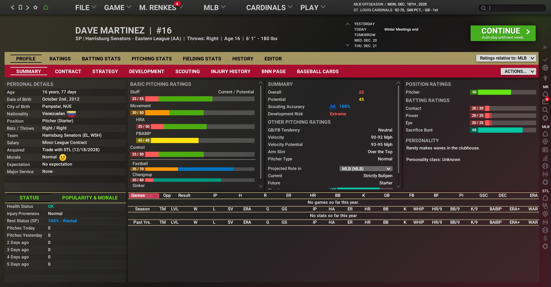 Ramos, 26, split last season between AA Richmond and AAA Sacaramento. In 110 games/120 starts, he hit .276 with 10 home runs and 60 RBIs. The Giants acquired Ramos as a minor-league free agent out of Columbia in July 2019. Gerth, 24, never pitched in the Cardinals' minor-league system having signed a minor-league contract on November 5 of this year after being released by the Colorado Rockies. He split time this season between Class A Freemont and AAA Albuquerque. In 23 starts, all but two in Class A, he went 5-4 with a 4.97 ERA. Gerth entered pro baseball after being taken in the 14th round of the 2024 draft by Colorado. The 18-year-old Ortega, who was signed as an international free agent out of the Dominican Republic, spent this past season in the Dominican Rookie League. He made 10 starts going 2-3 with a 4.43 ERA. |