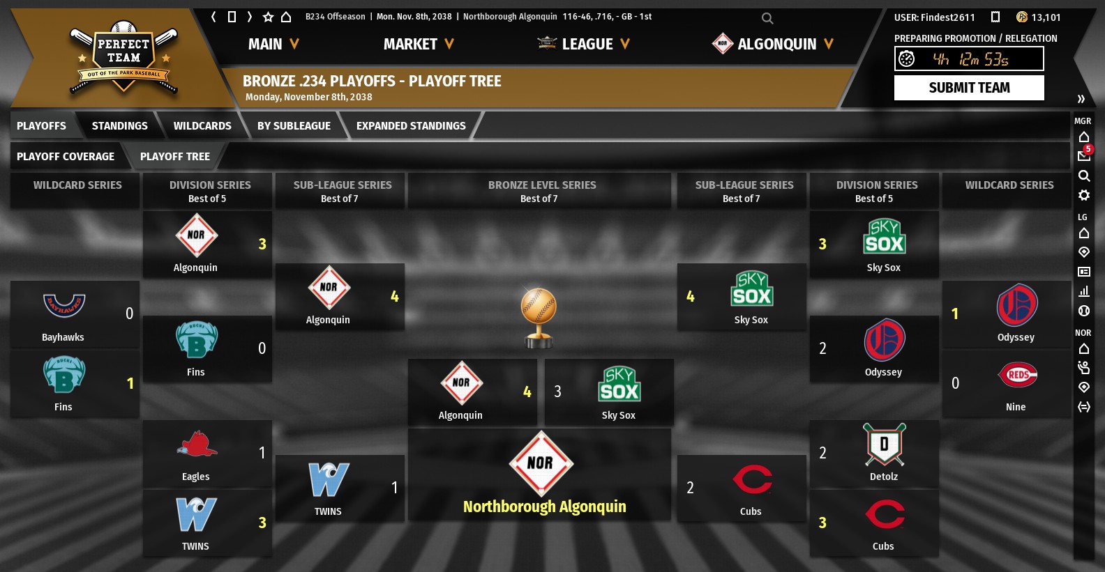 It may not be perfect league but I'm proud to post that after being down 3-0 in the WS my Algonquin came back and won 4 straight to win it!