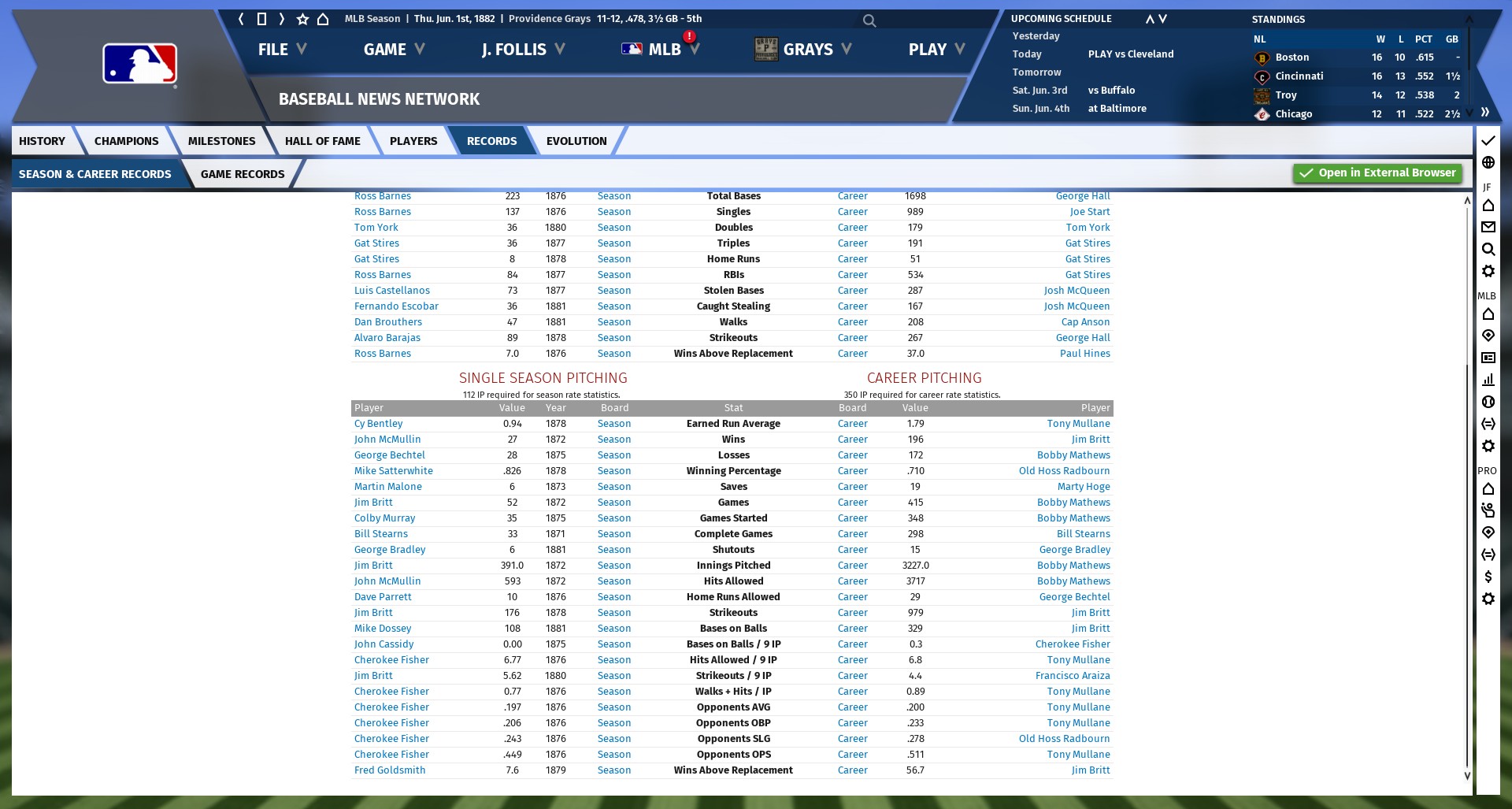 P.S. Note this no-hitter is the sixth of the replayed 1882 in-game season, and was not thrown in the first attempt at the entire 1882 season for the relevant game world. That is all. CD out.