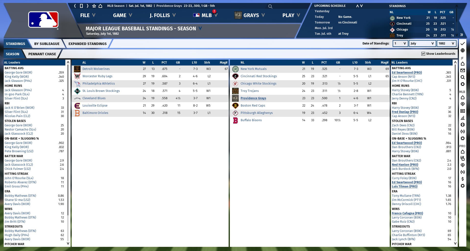 Current MLB standings as of October 1, 1882. That is all. CD out.