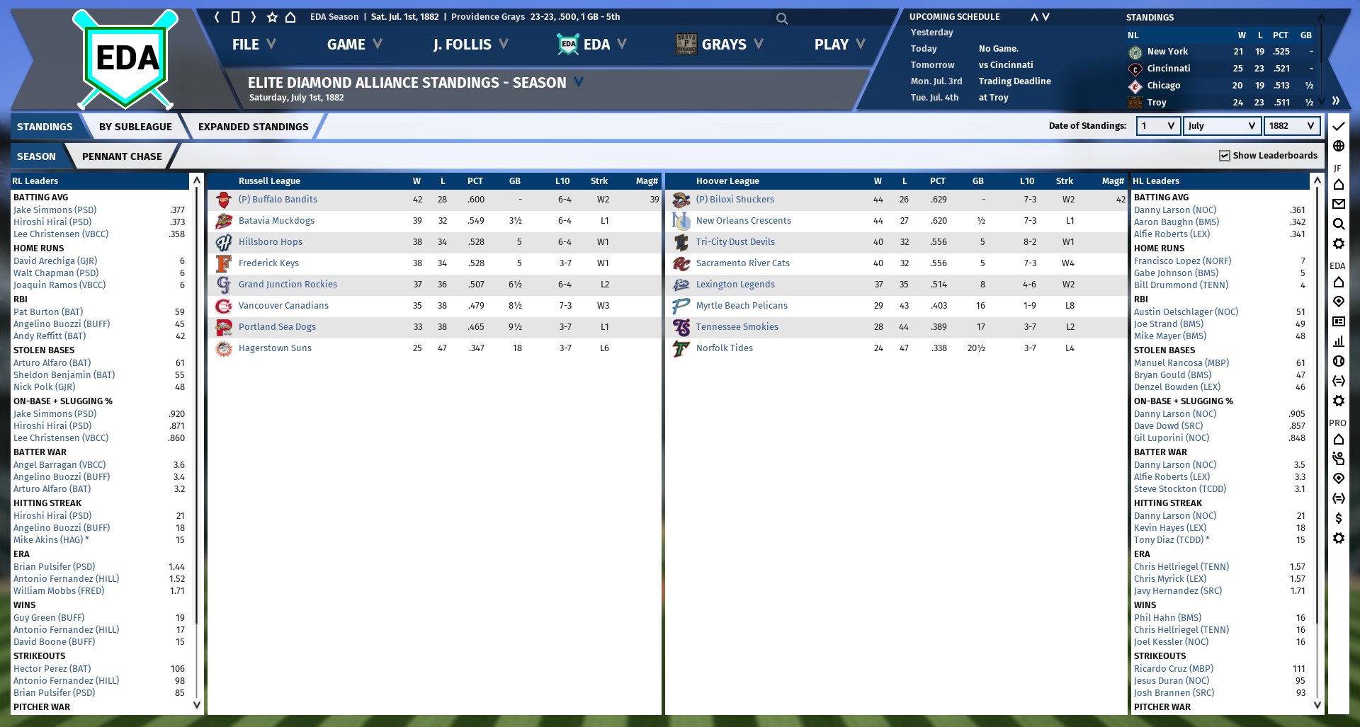 EDA final 1882 regular-season standings. Playoff prediction in next post. That is all. CD out.