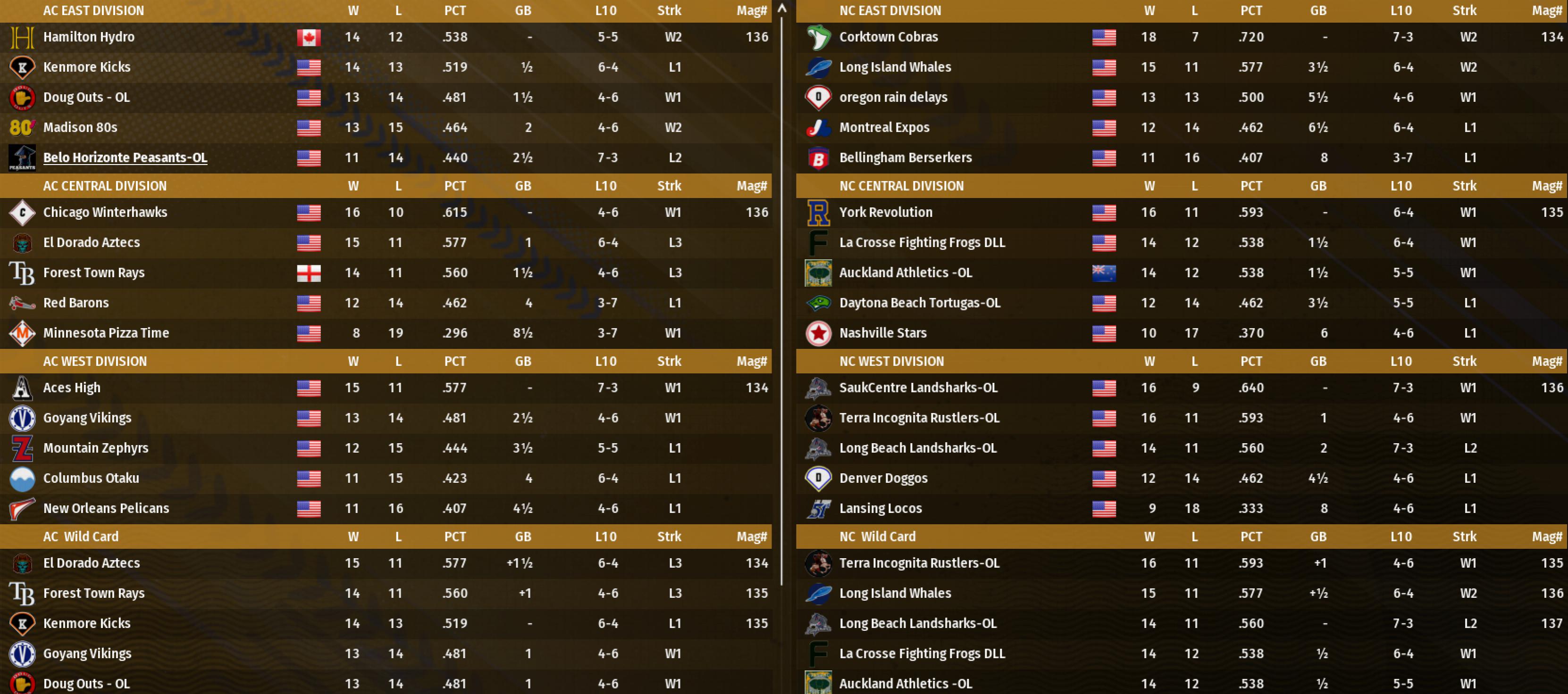 Despite going 8-22 overall and 4-5 in the OL in September/October, it was just enough for Colorado Springs to take the OL I155 title. The Mountain Hounds face Grovers Mill in the first round of the playoffs. Belo Horizonte also made the playoffs.