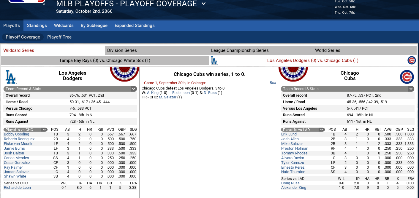 Strong start from King propels the Cubs into the Division series against Powers and the juggernaut Giants.