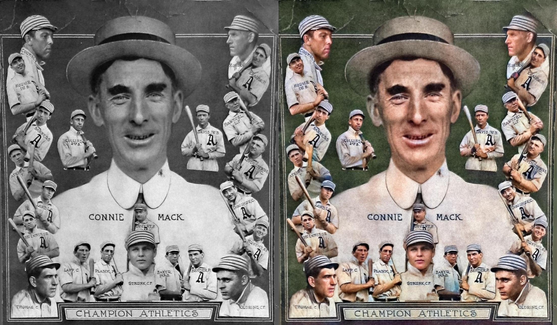 Don't know if you guys have ever tried this site Colourise SG (https://colourise.sg/#colorize).  You upload a B&W pic, and in a matter of 4-5 seconds you get it colorized.  Of course, you don't get nice results 100% of the time, but some are really outstanding.  I've tested a lot of pics, and came with this conclusion: not that good for individual photos, or  pics from the 1950 up era.  But for team pics from around the turn of 1900, some results were truly fascinating.   Quick, easy, and fun.  Of course, you'll note that sometimes some parts (hands,..) are still grey, but getting it in 4-5 seconds, and for a group pic, well, ...