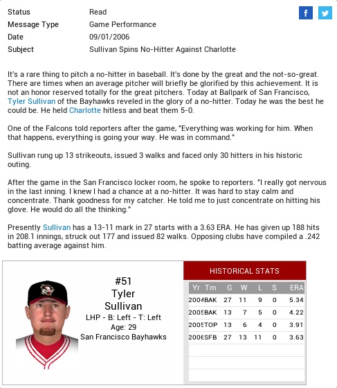 Did Pruitt rank among the league leaders in anything for Sarasota? With the minors using that new softer ball this season, his numbers look pretty derned nice. |