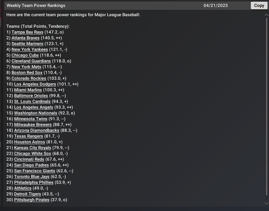 Record: 10-8, 2nd. 0.5 GB Chicago Cubs