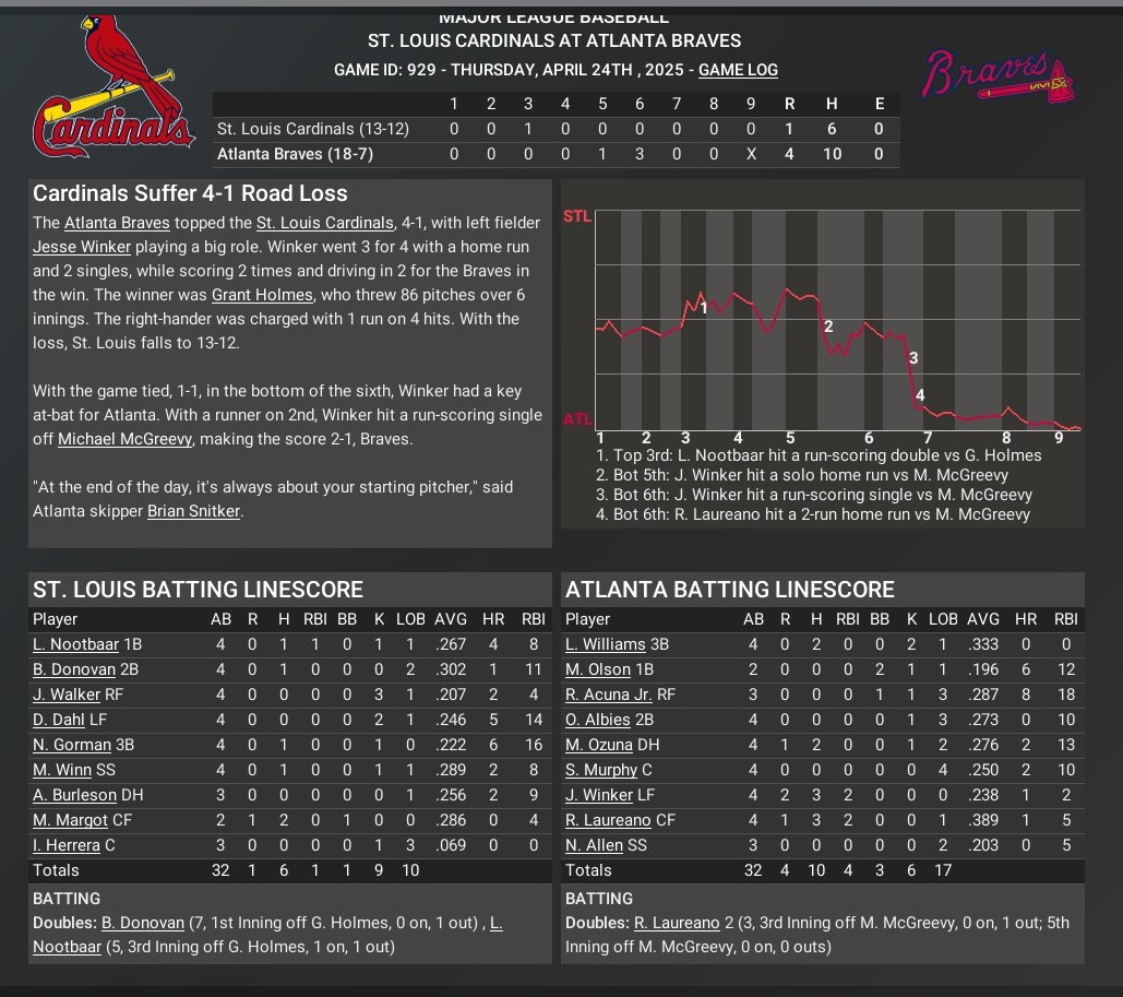 Cards news: April 24 -- Atlanta Braves 4, St. Louis Cardinals 1