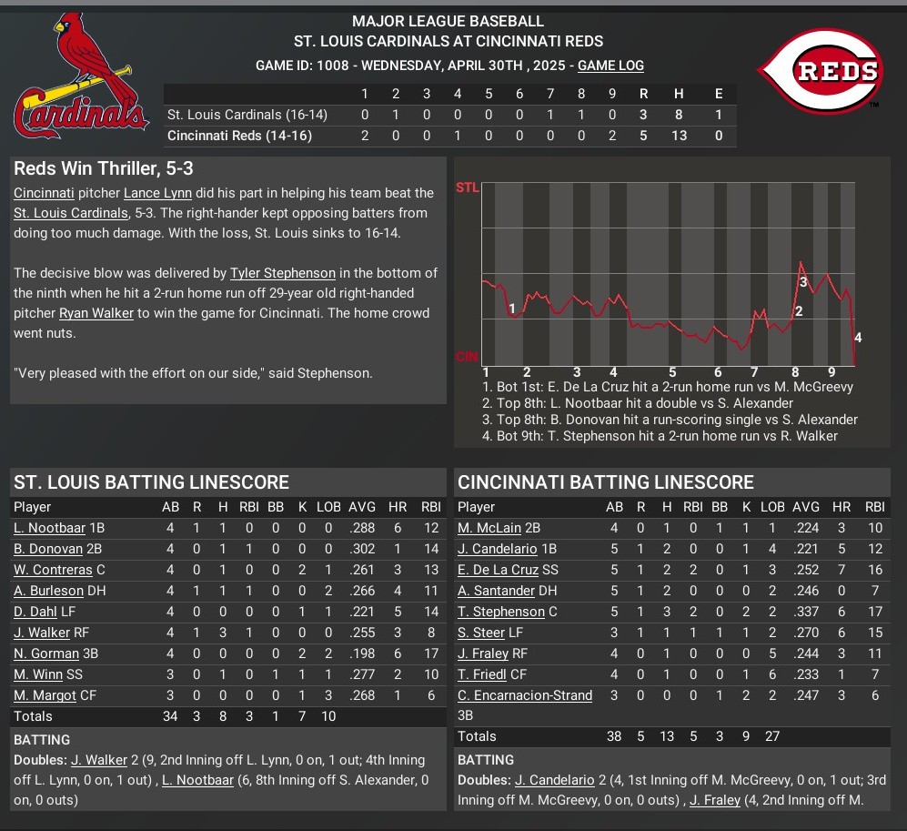 Cards news: April 30 -- Cincinnati Reds 5, St. Louis Cardinals 3