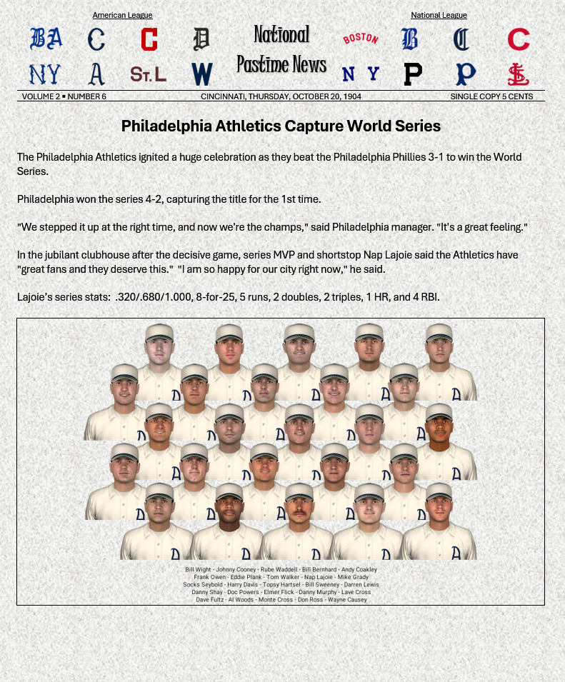 Nicely done! Really like the "National Pastime News" format.