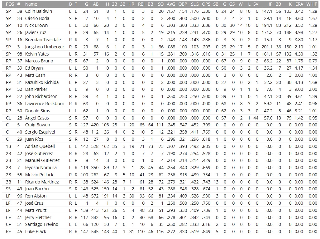 September Additions With rosters expanding on Monday, the Raccoons called up six players to complement their personnel, three pitchers and three batters. The batters weren’t very exciting, and frankly, most of the pitchers weren’t either. We added Santiago Trevino again for outfield defense. It hadn’t been his fault that he had been demoted (other than not having Ron Alston’s swing), and we would try to sneak him into a few more situations. We also added Manuel Gutierrez, the versatile Salvadoran infielder. Looking for another batter, we wanted a right-hander, and had to reach down to AA to pick Jose Cruz, who was just coming out of a slump. We might add a third catcher soon-ish. In hurlers, we added Dan Parker, the 21.60 ERA lefty, who will be assigned the most menial tasks only (so he won’t be on GM’s Sandwich Duty), also added Kaz Kichida for long relief (trying to give Yates a few more starts, too), and former first round pick Brendan Teasdale. His ERA was in the high 4’s in AAA, but I already explained that at some point it’s time to throw them into the water and see whether they sink or not. I also remember the way his name is written now. It’s like Brenda, and not like Marlon Brando. A girl after all, it seems. Raccoons (78-51) @ Falcons (71-57) – September 1-3, 2008 Strengths were roughly opposite between these teams. While the Raccoons enjoyed a top 2 pitching staff and had (still…) a middling offense, the Falcons were scoring the second-most runs and had a middling pitching staff, ranking only seventh in runs allowed. The pathetic nature of the CL South however had them virtually assured of the playoffs already with five weeks to play, with everybody else at least double digits behind and with a soundly losing record, the 62-69 Condors leading the pack. With the season series at 3-3 so far, no team can win more than six from their opponents this year. In this particular matchup, neither team has won more than six from their opponents since 1998, when the Raccoons took seven games. The year before, horrid 1997, we were bloodied 1-8 by the Falcons. Since ’99, the series is almost even, 43-44 from our view. Projected matchups: Nick Brown (13-8, 3.36 ERA) vs. Pedro Vargas (8-6, 4.23 ERA) Javier Cruz (8-8, 3.84 ERA) vs. Alfredo Collazo (6-10, 4.83 ERA) Kelvin Yates (9-7, 4.69 ERA) vs. Tommy Wilson (8-11, 5.87 ERA) Could be three right-handers, but they could still make a move, too. Now the sticky news. It’s unlikely that Teasdale will even debut this week. He has pitched on Saturday, but only threw 82 pitches. He could possibly go on short rest in the season finale. I quite surely won’t have him toss to the Crusaders on the weekend. We have lined up Baldwin (so, meh), Jong-hoo, and Brownie for that, and we just can’t do much better that that. So, game 3 is a maybe right now. Could be Yates, could be Boda, could be Teasdale, could be some walk-on we pick up from now until Wednesday. Game 1 POR: 1B Quebell – CF Castro – LF Alston – RF Black – 3B R. Martinez – 2B Nomura – SS Barrón – C Bowen – P Brown CHA: SS J. Rodriguez – RF Theobald – C F. Chavez – 3B J. Lopez – LF J. Flores – CF P. Estrada – 1B Reya – 2B H. Green – P P. Vargas In a strange game for Brownie even by this year’s standards, he neither walked nor struck out any of the first 15 batters in the game. At that point he trailed 2-1, including a chain of three 2-out base hits in the second and home run leader Jose Lopez’ 28th shot in the damage column. With a runner on third, he struck out Reya for the second out, walked Hubert Green, then got a favorable grounder from Vargas for the second time in four innings to strand two. Brown was knocked out in the sixth, when Vargas was up with two on and two out for the third time in the game, but this time lined a single to left. Another run scored when Javier Rodriguez singled against Donald Sims. The Raccoons had scored a lightning quick run after a Quebell triple in the first and since then had been almost entirely absent, a condition that never changed. Dan Parker was assigned a most menial 6-7-8 portion of the Falcons’ order in the bottom 8th and coughed up another run and then even needed rescue, and yet that still lowered his ERA by a few full points. 5-1 Falcons. Quebell 1-2, 2 BB, 3B; Alston 2-4; We managed four hits, Brown managed four walks, and Luke Black managed four strikeouts (more than Brown). So this was quite the dumpster fire and it can hardly get worse from here. Game 2 POR: 1B Quebell – CF Castro – LF Pruitt – RF Alston – 3B R. Martinez – 2B Nomura – C Bowen – SS M. Gutierrez – P Cruz CHA: 3B J. Rodriguez – LF J. Flores – 1B J. Lopez – RF Reya – CF P. Estrada – SS S. Moore – C Ishikawa – 2B H. Green – P Collazo Martinez was the only right-hander in this lineup and Collazo was mediocre at best. We better make some sparks now! Quebell’s leadoff jack (#16 on the year) was certainly a spark. Two walks and an infield single by Martinez loaded the bases with one out before Collazo started emptying them with a wild pitch, which cost the Falcons another run when Nomura bounced to Steve Moore, but the double play had been taken away. Actually it cost them three more runs: Bowen homered (also #16!) to extreme right, almost foul, and the Coons held a 5-0 lead. Then came little Javier, seven years old, and lit some matches. Cruz walked the first two batters, then also allowed some hard contact. An Estrada fly beat Pruitt’s limited range for a double and the Falcons took two runs right back. The fire spread rapidly. Tomas Castro hurt himself racing after a drive in the second inning, and the next batter, Falcons original Hubert Green, jacked a solo home run to cut the gap to two runs. For a while it was doubtful whether Cruz would pitch longer than Collazo in this game, but when the first four Coons all landed base hits in the fourth inning, Alston’s 2-run single ran the 