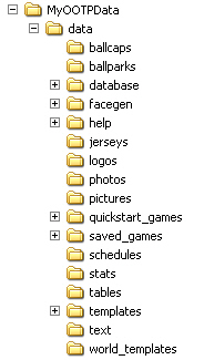 1. Create a new folder where you'd like to store your OOTP data. For example, D:\MyOOTPData\data 2. Go into Game Preferences, and under Custom User Data Path, select where you would like to put all of your OOTP stuff, i.e. the folder you established in #1 above. The folder name must end with "\data"! 3. Quit OOTP 4. Find the "data" folder currently used by OOTP (by default, C:\Documents and Settings\user name\My Documents\Out of the Park Developments\OOTP Baseball 8\) 5. Manually move the data directory and all subdirectories from there to the new folder you set up in #1. (Below is a screenshot of what it should look like when you're done.) 6. Start up OOTP That should do it! If for some reason you can't do this, for example because some kind of crash is preventing you from even loading the game, then try these steps instead: - We need to tell OOTP to open the data from that folder. Open the Windows Start menu, click on "Run", enter %appdata%\Out of the Park Developments\OOTP Baseball 8\data\config and hit Enter. This should open a folder with some config files in it. - If there is a file called "paths" already there, open it with Notepad or another text editor. If there is no such file, right click in the folder, select "New --> Text Document." Call the file "paths" (with no .txt extension), and open it in Notepad. - In the first line, write "path_user_data" and hit enter, in the second line write the path like this one: C:\OOTP8\data. So the file should look like this: path_user_data D:\MyOOTPData\data - Close and save it and restart OOTP Screenshot of what the folder should look like: Last edited by Andreas Raht; 04-03-2008 at 02:27 AM. |