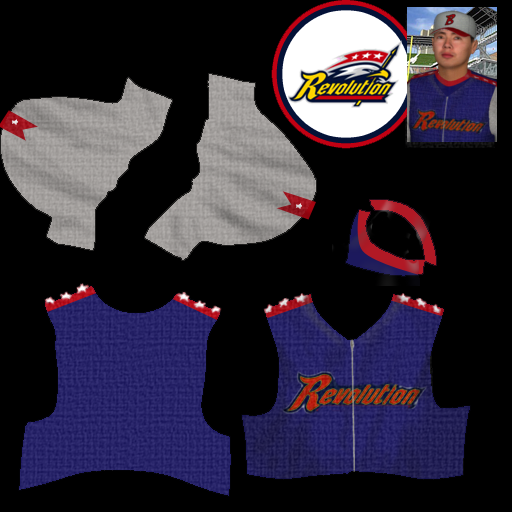 In preperation for the upcoming release of OOTP9 I'm finishing up one last season, trying to steer my team to it's second championship ring. I'd like to spruce up my uniforms and thought I'd ask if anyone wanted to take a go at remaking my old uniforms. I'm currently running a "modern" league that started in 2007 and is now in 2012. Here's the current design as modelled by our 1B/DH/God of Clutch Mark Shewman. and our current logo by itself I really don't have any specific request, except of course the name would need to stay the same (as much as I like the name Rays for a team, or a diner, I'm going to stick with Revolution). Any and all attempts are appreciated