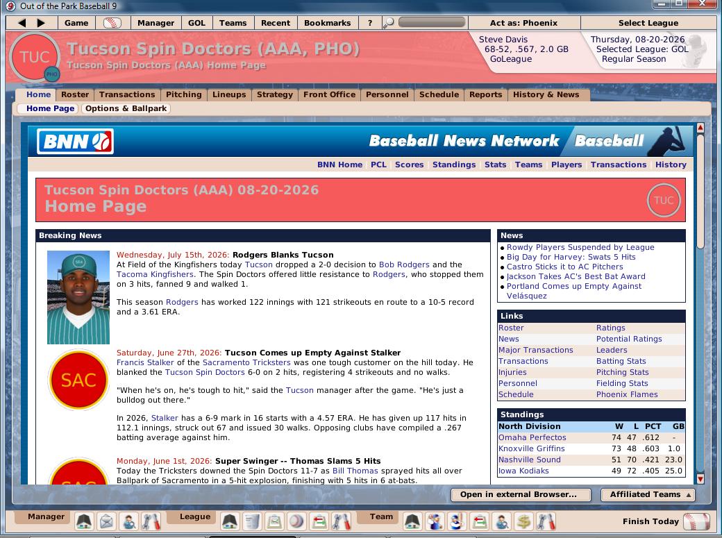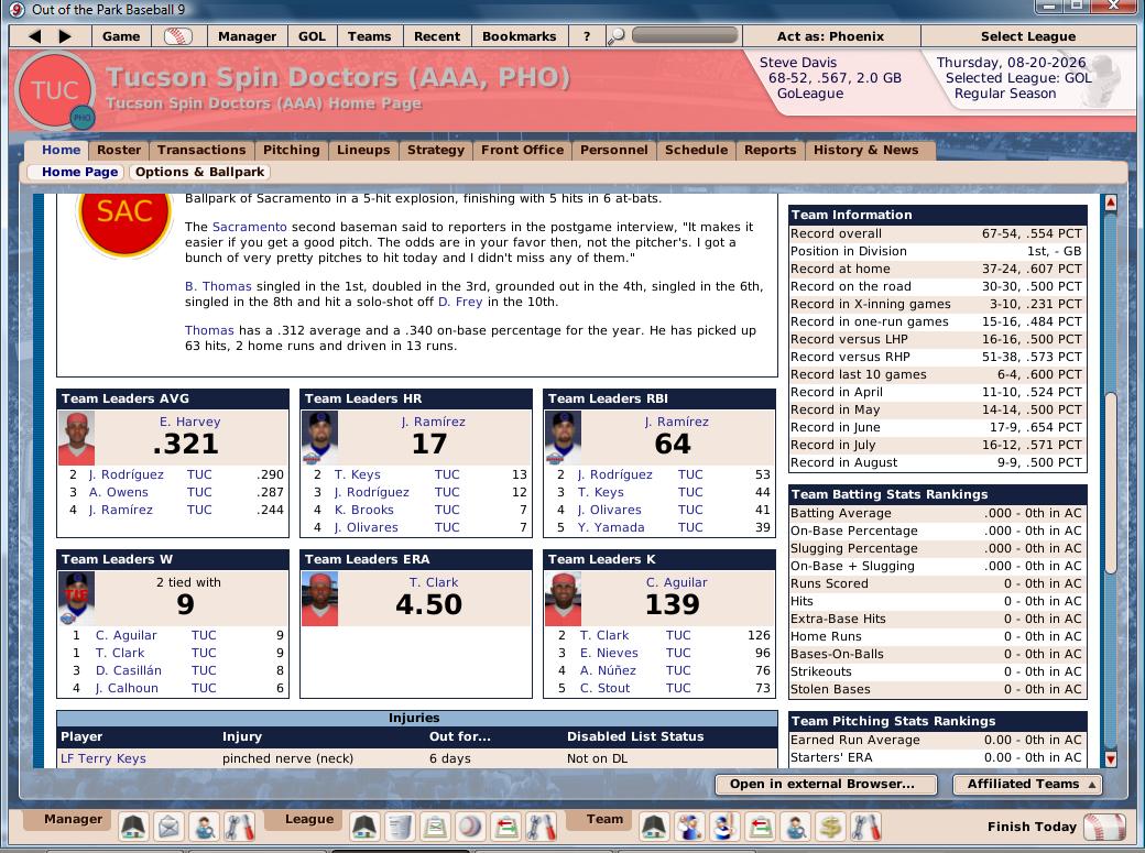 This one is just odd. The home page for my AAA affiliate is linked to the wrong division, which screws up all the comparative stats. I've not moved this team from where it was in the startup. Is this a setting error, a bug, or just a flaw in the space-time continuum?