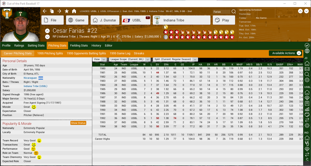 Here are some of my top players over the years. Started in 2015 on OOTP 16, now in 2030 on OOTP17.
