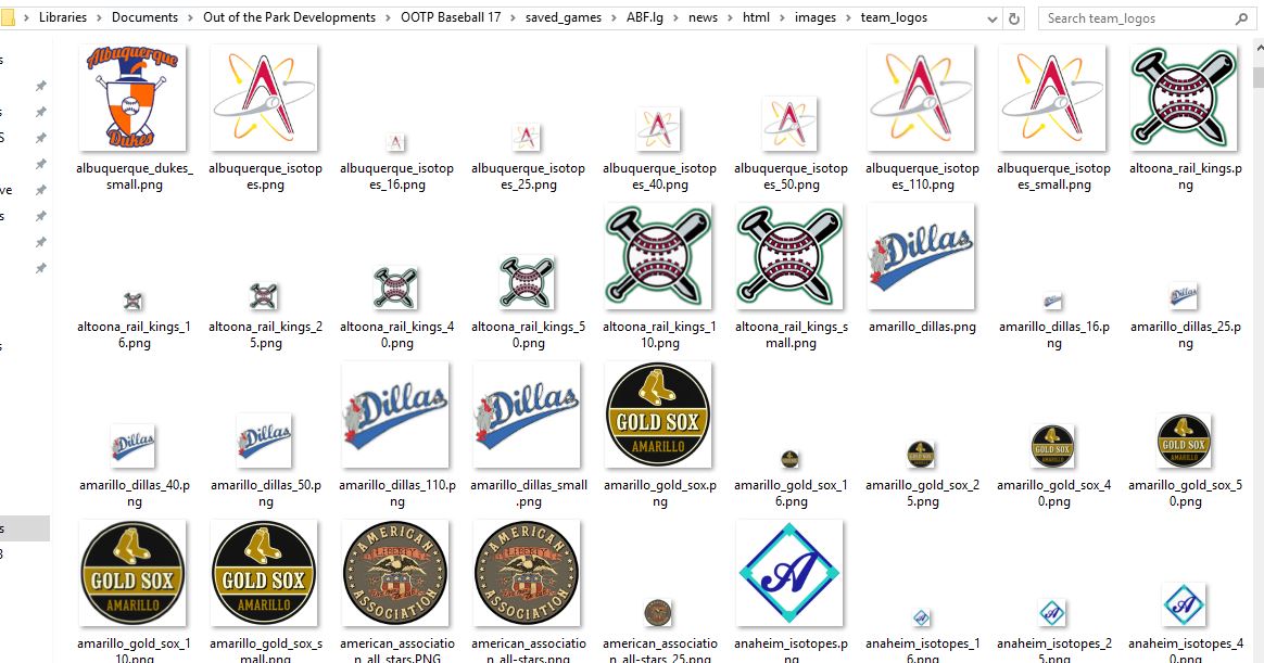 I placed the Southern Association League Logo in Images in the Saved Game folder marked League Logos. But it doesn't show up... a game-generated generic logo is used. I delete the 6 game-generated logos of various sizes, but they will still be there whenever I come back to the league logo folder. The manual states you can "Globally" place a League Logo in the "datalogos" directory and it will be used in all "new saved" games. Where is this "datalogos" directory? I did not see it anywhere in the OOTP Development folder. Last edited by Eugene Church; 06-24-2016 at 01:36 PM. |