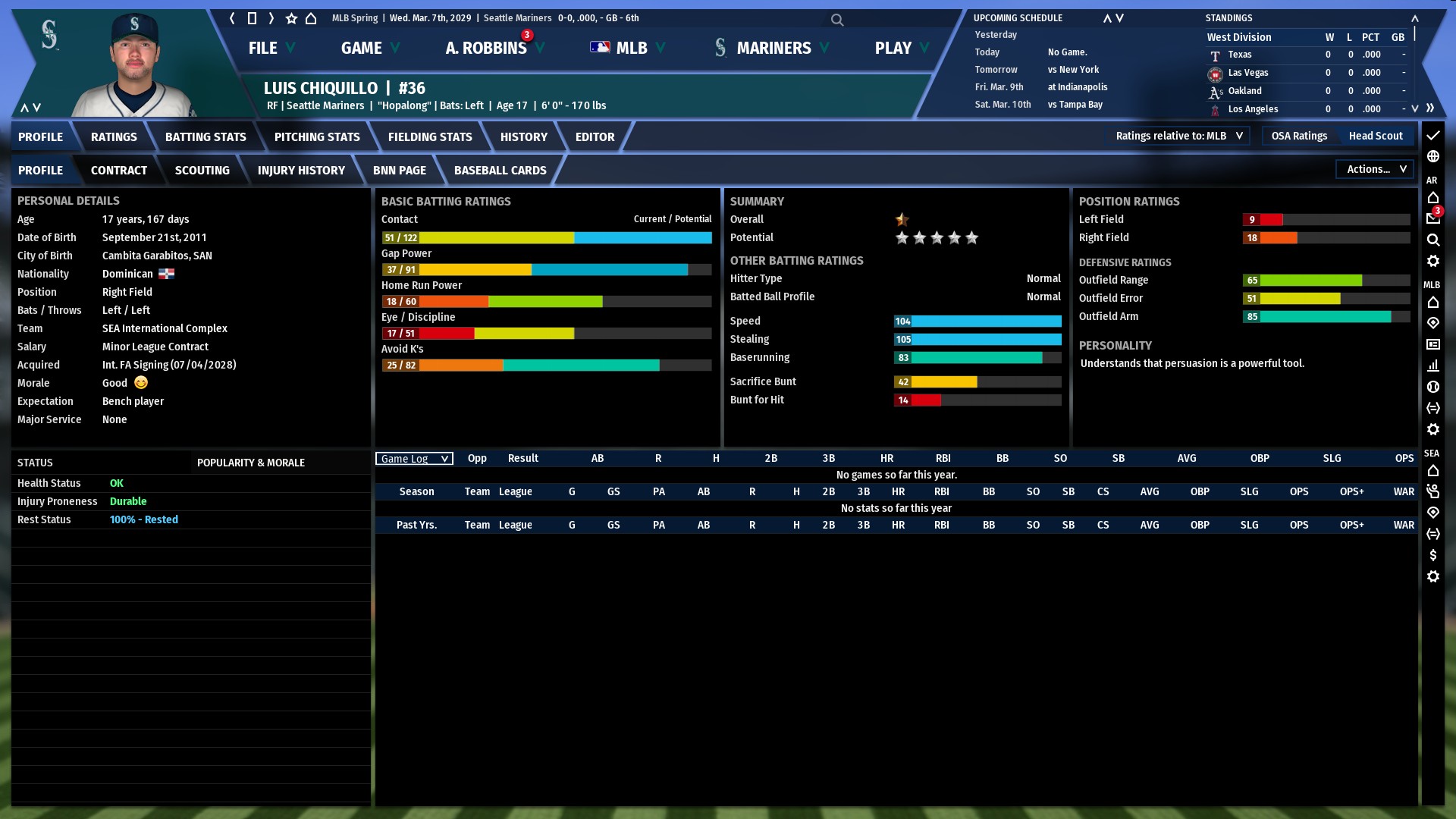 I have an awesome looking prospect (Int FA) that turns 18 in early September. Not 100% sure if I should bring him up to DSL ball or straight to low A(with a good hitting coach) or wait and see how his development plays out in the complex for now.. ![]() Any opinions are appreciated! Last edited by Arobbins; 08-31-2018 at 04:21 AM. |