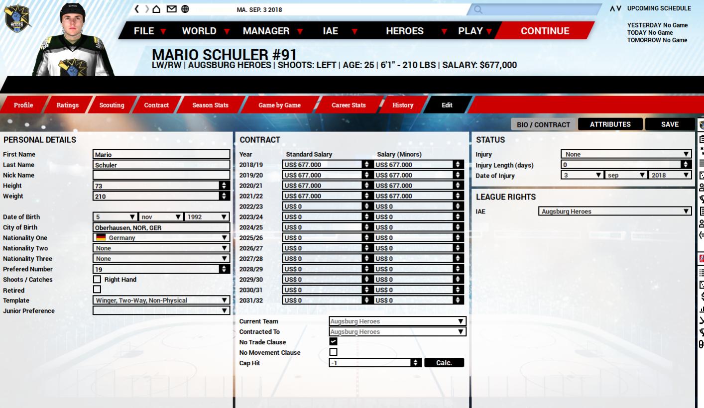 There is a way to convert the tryout contracts to normal ones, though: in the player screen, click on the "retired" box, then hit save. That'll reset the contract. Then unclick retired, enter the values you want for the contract, and edit the current team and contracted to fields to the team he was on (they'll be removed when you 'retire' the player.) That'll leave him with a regular contract. |