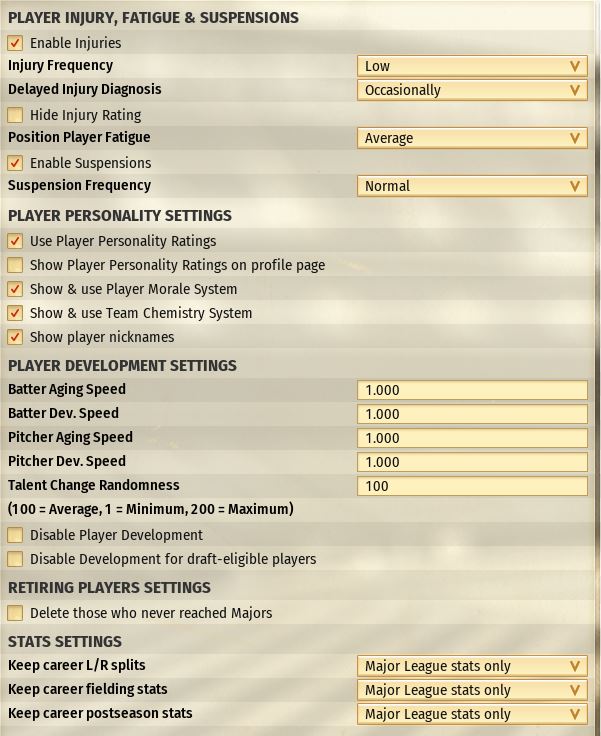 I'm doing a fictional historical run from 1901 to present. Does the injury rating change as I move through the various eras or so I set it to modern now and leave it alone for the entire sim? I have import historical everything on except for rookies if that matters.