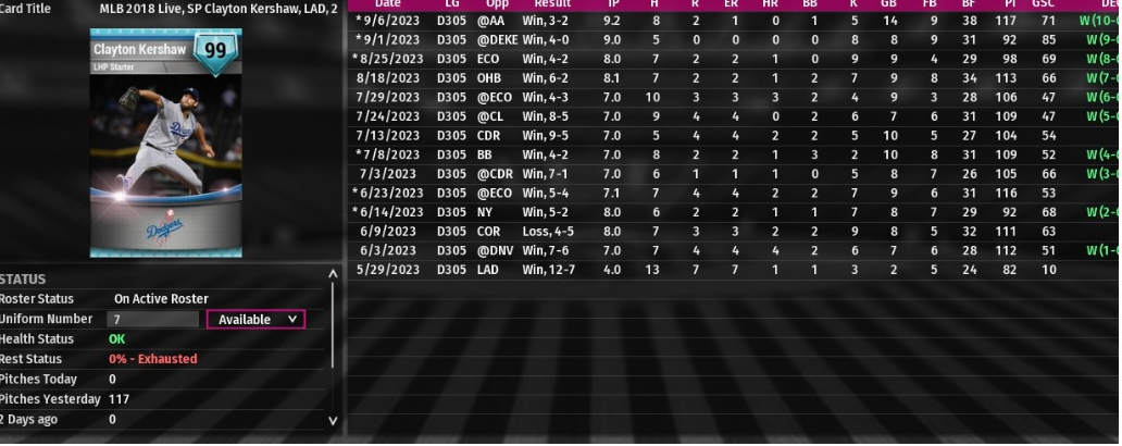 My thor just lost his first 2 games of the year after starting 16-0, got that 800 PP achievement. Was a pretty fun run. He's still leading the league in ERA.