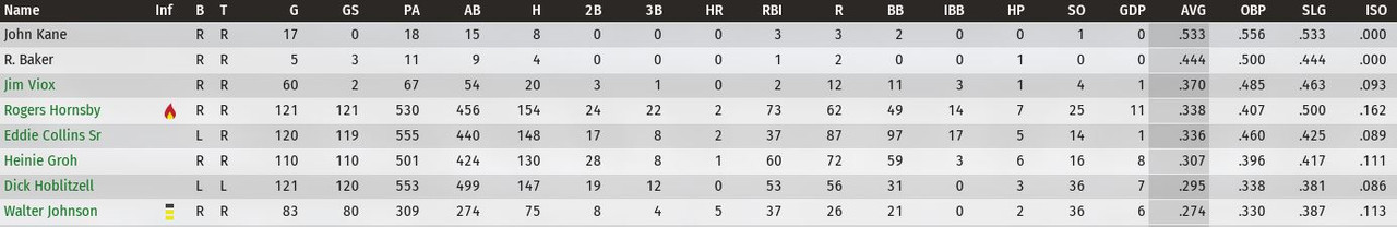 I actually have Lou Gehrig from drafting him out of HS. He is coming along very slow unlike top other players. Only 21 though.
