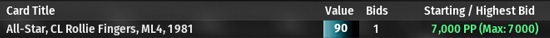 Theo Epstein puts Kris Bryant on the AH with a starting bid of 100 PP. Brian Cashman comes along and puts in a bid of 200. 100 is shown as the max bid currently. Sandy Alderson decides he wants to bid and lays down a bid of 125. Since Cashman bid 200, he retains his max bid but it is 125 now. Alderson can bid as much as he wants but as long as he bids lower than 201, Cashman remains the max bidder. Let's say after Alderson's 125 bid he decides he wants to bid 400. Once he puts in that bid, he becomes the new leader at 201. Does that help? |