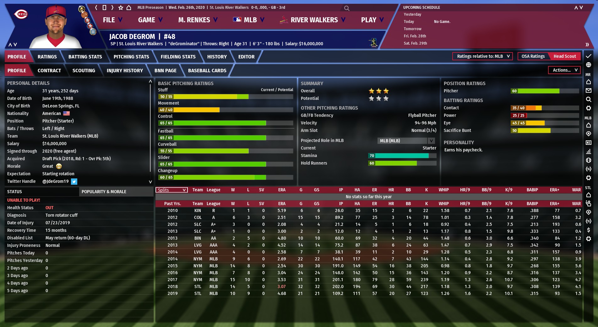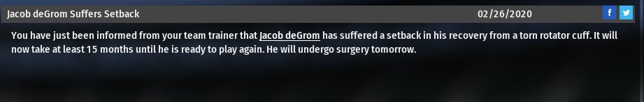 The injury is likely to keep the 2018 Cy Young winner out for 15 months, and with his contract expiring at the end of the 2020 season, it probably means he is done pitching as a member of the River Walkers. On one hand, it makes the trade earlier this offseason for left-handed starter Danny Duffy to be a smart one. But on the other side, maybe the Walkers should have gone after a better pitcher. |