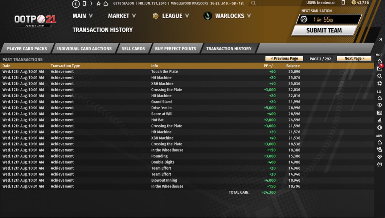 Always nice to get an unexpected huge PP boost though I have never had one like that. I wish we could have seen the PP generated by the cheater a couple seasons ago that scored over 170 runs in a game along with several other 100+ games. They clearly got warned and started trying the next season and on so they should be in perfect in a few weeks with all their undeserved players.