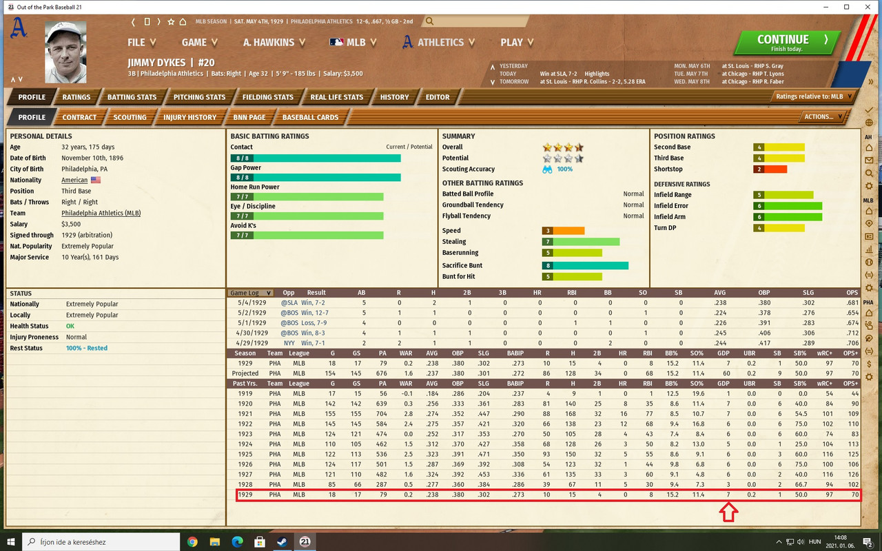 We don't have GIDP stats for that year,so I don't know how OOTP calculates that for individual players. Cochrane was slow, so that might explain why he's grounding into double plays. Not too sure what's up with Dykes - he was speedy and had some pop in his bat. Maybe his problem is that he was batting with slowpokes like Cochrane and Mule Haas on base. |