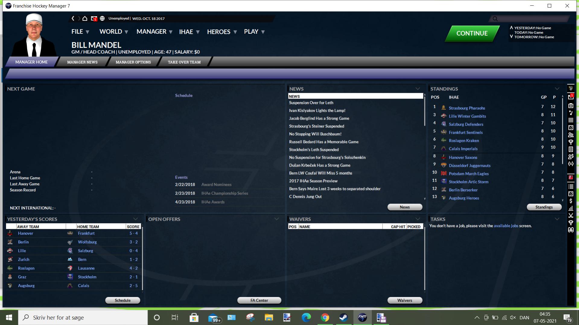 The European League of the IHA (Ice Hockey Association) is rebooted once again, player names and talent levels are simliar to before, but am currently starting in 2017,