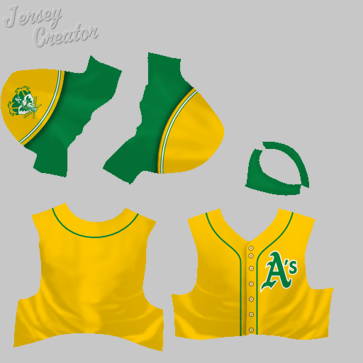 Long before Dave Kaval started popping up everywhere threatening to uproot the A's, I put them in Portland for my WBAT/AABBA project. Using pieces from SFGiants58's Defunct Saga project, I made some gold-dominant unis people might like if they relocate the A's. I can't remember if I made the ballcaps or if I got them from one of the other threads here with SFGiants58 stuff, made by Golem64 or rjl518. Sorry I can't credit more specifically but I renamed the files when I downloaded them and can't find the exact thread now.