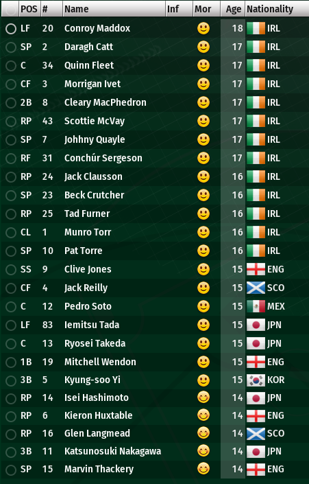 http://pebabaseball.com/) and we've recently run into an issue with our feeder leagues, despite not changing any settings. We have 2 international feeder leagues (COL, HS) and two US-based leagues. Our international leagues have teams from across the world like Ireland, The Netherlands, etc. Those teams have always generated 90-95% of their players from their country and the final 5-10% from our default player origin settings which I guess is the default. But suddenly, in the 2035 season, they completely stopped and have ONLY generated players from the default player origin settings. I have even tried to manually set the "Region" and "Team Draft Region" but those haven't worked either.
