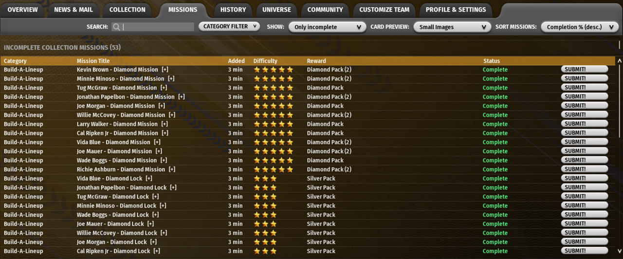 Same boat here as a F2P. I also wrapped up my Negro League missions to get my Bullet Joe. The only missions I have left are five of the Platinum ones but I’m not in any rush on those. Unless there’s some great content this Thursday, I’m thinking I’m going to bank packs until Platinum Series 2 comes out on the 11th.