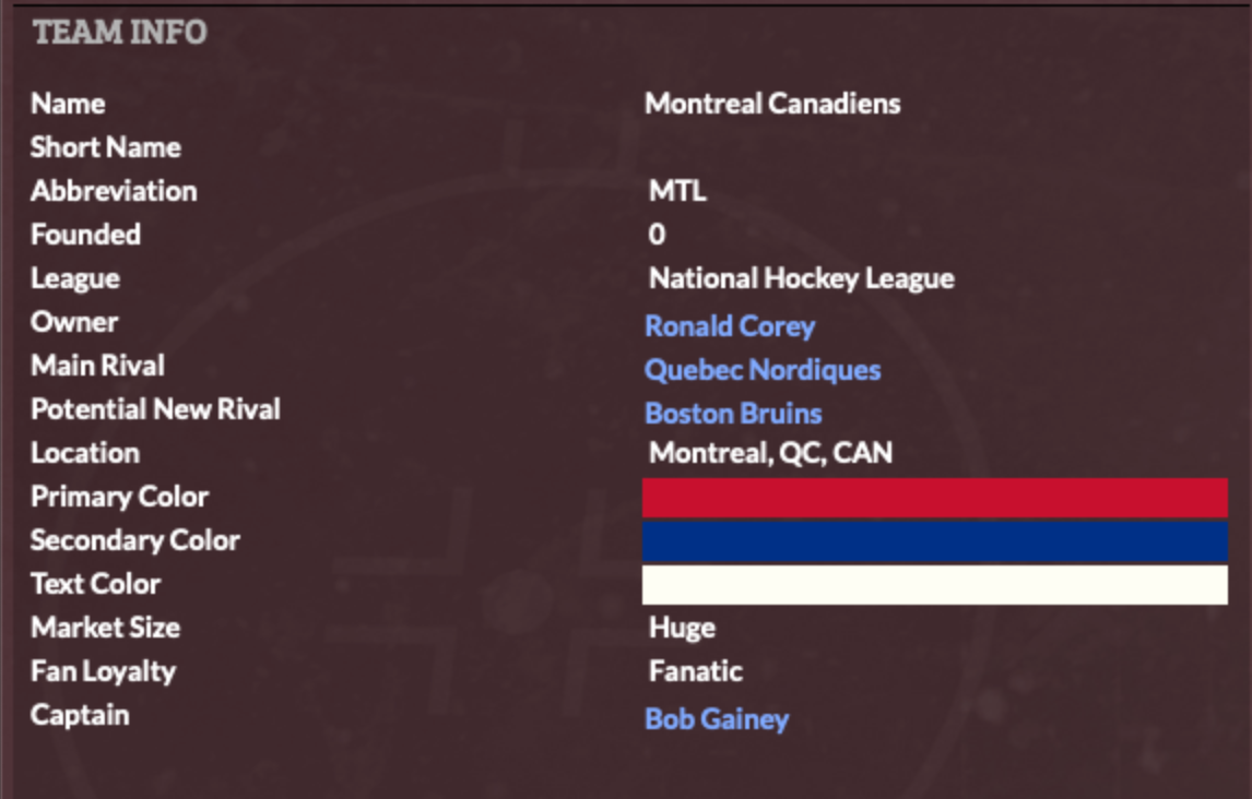 ![]() Only Edmonton Oilers has Founded year, all other teams it's 0. |