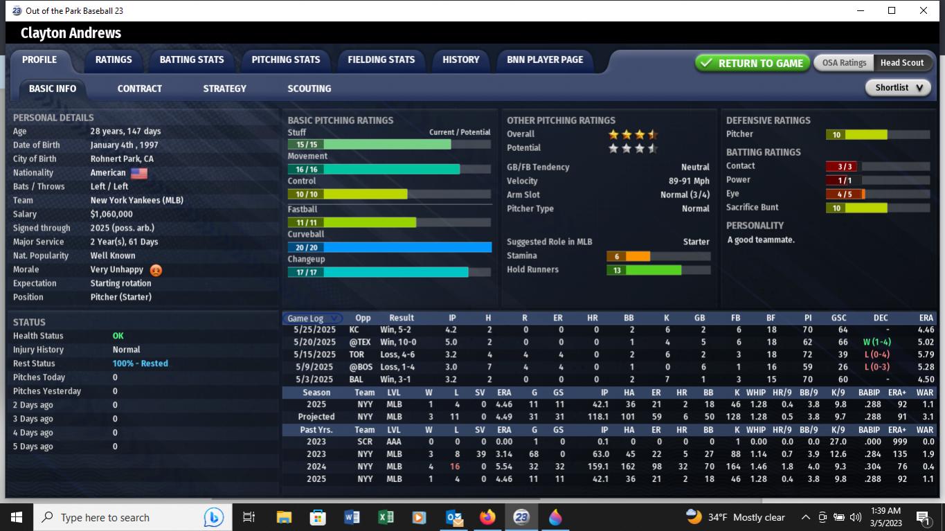 In a DH league (normal AL, real rosters), for some reason, the computer AI has Clayton Andrews not only batting, but hitting #6 and staying in as the DH after he's pulled. His ratings are awful, and he is a career .474 OPS. But for some reason the AI sits the DH when he plays. Hunter Dozier is the normal DH.