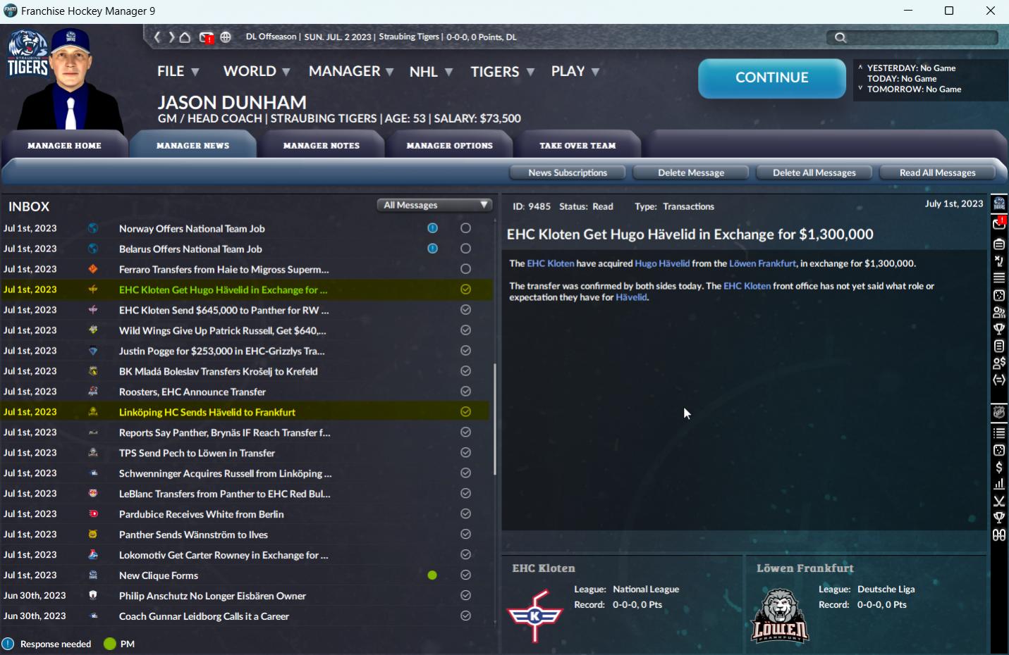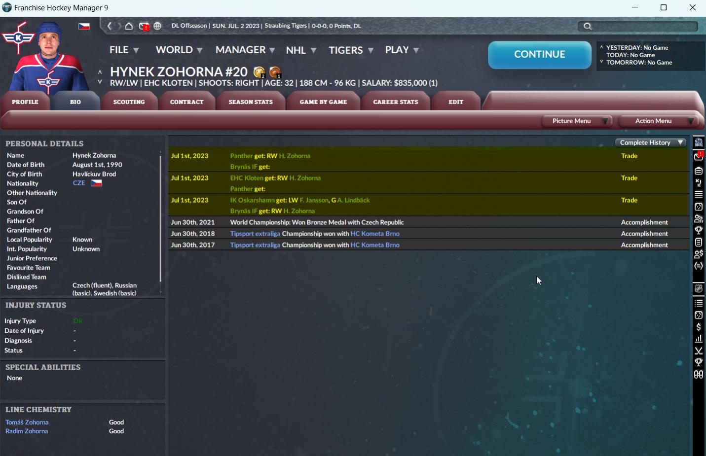 Players get transfered from Team A to Team B to Team C on one day. Here are two examples of my current save game |