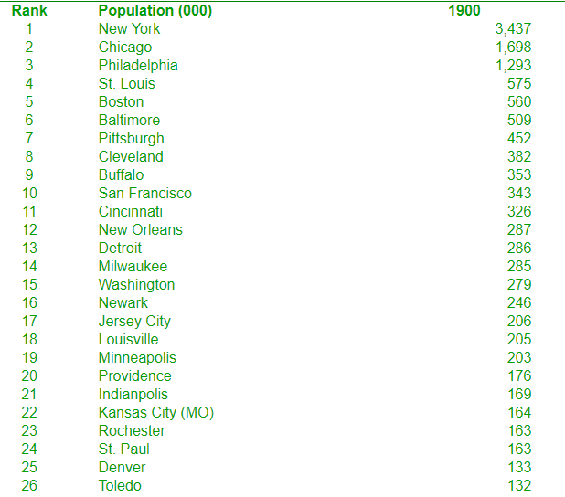 In the East, New York got a franchise along with Brooklyn (which had just joined NY as borough). I gave Boston one, not two, as well as Philly, one, not two. Washington and Baltimore received one, Baltimore is especially high on the list. Buffalo was also surprisingly high up on the list in 1900 so they got a franchise. I wanted one very small market, so Providence, which was much higher up on the list in 1900 than it would be now also got a club. In the West, not limited by travel issues, I gave teams to 2 large cities, L.A. and San Francisco, two truly "west" locations. In addition, clubs went to Pittsburgh, Cleveland, Detroit, St. Louis and Cincinnati, cities which would lose population through the century but were quite large comparatively at the time. I ended up giving Chicago one franchise rather than two. My plan is to take two of the cities that don't perform well financially and on the field and move their franchises in the first couple decades to a place like New Orleans, Milwaukee, Minneapolis or another city deserving of a team. 16 cities ready to compete!